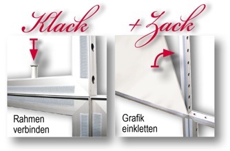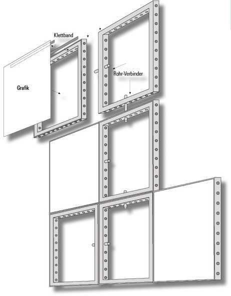 Die Rahmen werden einzig und allein mit einem Schnellverbinder zusammen gesetzt.